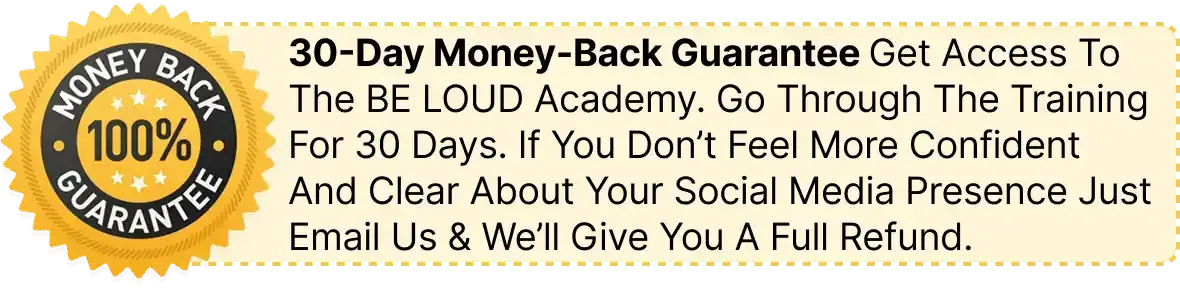 Yes. Your purchase is protected by a 30-Day No-Questions-Asked Money-Back Guarantee. If you feel Be Loud Academy doesn’t add value, just email us within 30 days and we’ll issue a full refund. Simple and stress-free.
